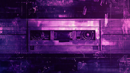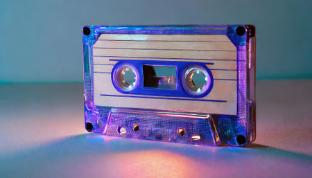 This image showcases a neon-themed audio cassette, reminiscent of the s era, highlighting vibrant retro colors and iconic music culture, celebrating vintage aesthetics and nostalgia in a