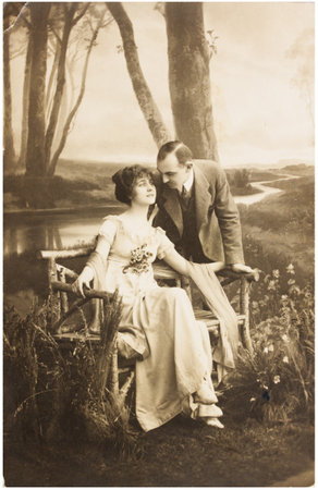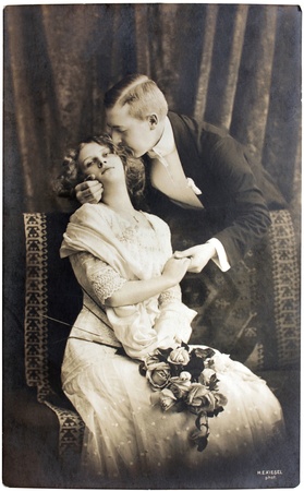 GERMANY - CIRCA 1911: a postcard printed in Germany shows sepia toned photograph of couple in love, circa 1911.