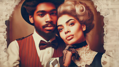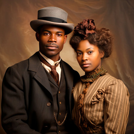An African American couple posing for a photo in the late 1800s in America, AI-generated.