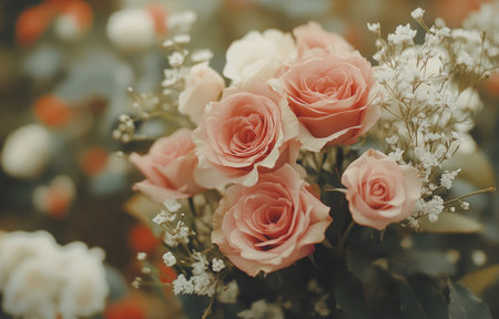 bouquet of beautiful rose flowers, wedding day background