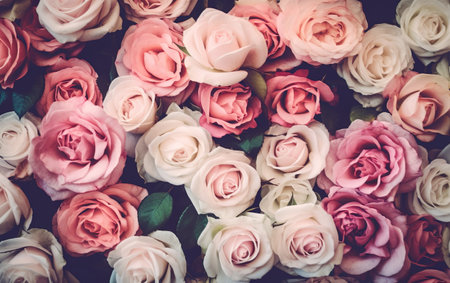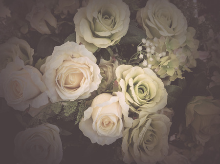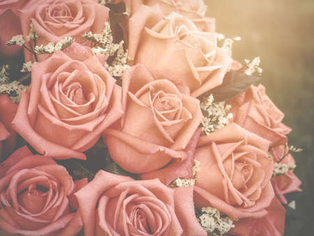 Beautiful pink and white roses background - Vintage filter processing style pictures