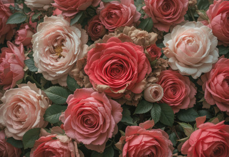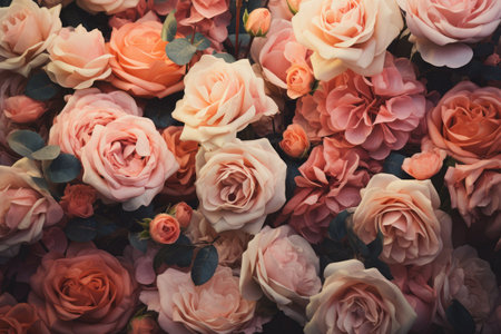 top view of rose flowers as a background close up Backdrop of colorful roses AI Generated