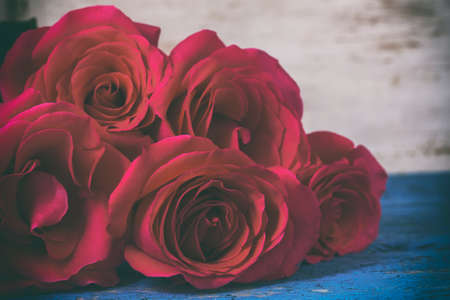 roses on the wooden background. Selective focus, toned photo