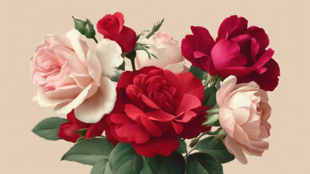 This captivating bouquet showcases a blend of red, pink, and white roses, each petal detailed intricately. Perfect for floral design, nature lovers, and romantic settings.