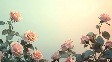 Soft pink roses with fresh green leaves arranged beautifully on a pastel backdrop, perfect for nature or romantic-themed designs