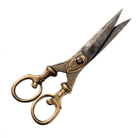 antique scissors isolated on white background. vintage accessoriy