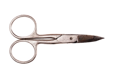 Small manicure scissors isolated on the white. Old and used.