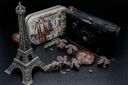Old retro vintage camera photography copyspace. Obsolete nostalgia style.