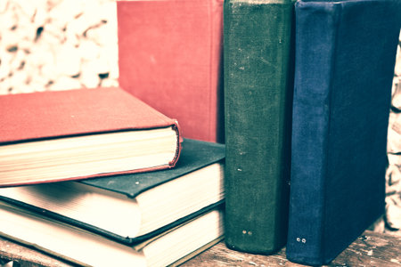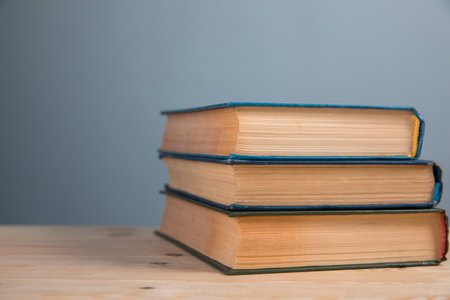 stack of vintage books close up, reading, education, literature, back to school concept, large copy space
