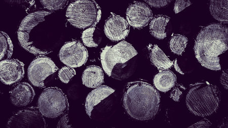 Wooden beams as nature background. Forest clearance -environmental protection and agriculture concept. BW abstract filter toned.
