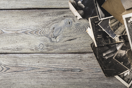retro some old photos on wooden table