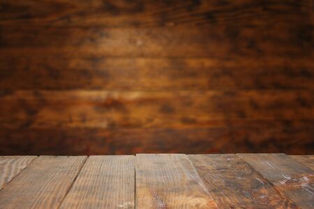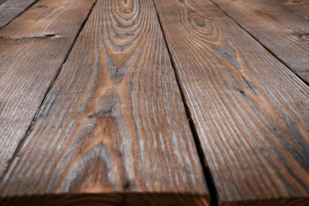 Rustic wooden background. Old vintage real natural planked wood. Free text space. Selective focus.