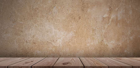 Empty wood table top and blur wall. Wall Texture Background. Building banner mock up abstract background - can used for display or montage your products.
