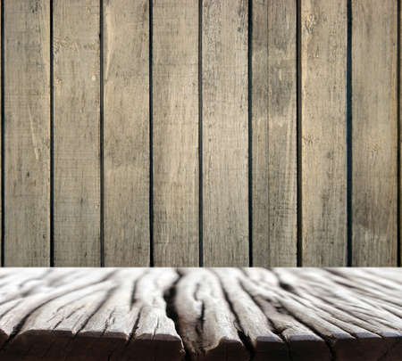 old vintage brown wood panel tabletop with white grey color plain paper texture background for advertising and promote products on display image.