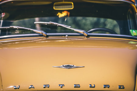 Heidenheim, Germany - July 8, 2018: Hood and emblem of a Wartburg 312 at the 2. Oldtimer day in Heidenheim an der Brenz, Germany.