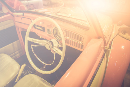 Interior of a classic vintage car. Old car.