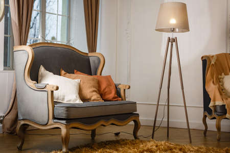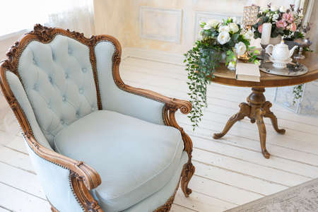 Part of a sofa in luxury styled vintage intereface in light tones