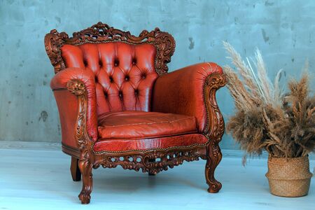 vintage leather armchair and dry grass decoration