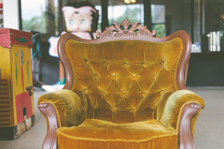 Antique armchair furniture with cushion against white wall