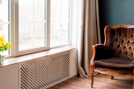 Luxury interior of an old house with a chair and a window
