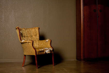 An old vintage armchair stands in the corner of the room