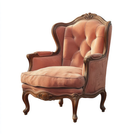 This delicate armchair features a charming vintage style with plush upholstery and intricate wooden details, showcasing elegance and comfort. Perfect for any stylish space.