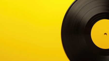 Classic black vinyl record on a bold yellow background with copyspace