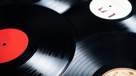 Background with several old vinyl records to play music