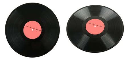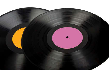 two vintage vinyl records isolated on white background