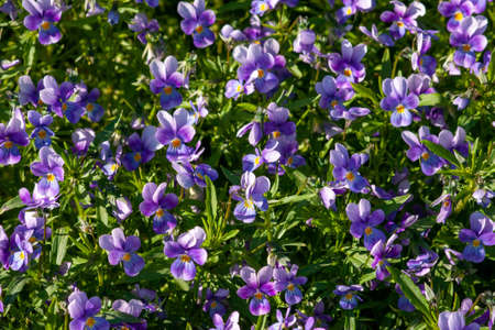Purple and violet heartsease, flower garden - close-up in sunshine