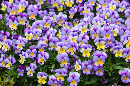 Garden flowers-Violets (Viola tricolor) or horned violet. Also have the name pansies. Soft selective focus.