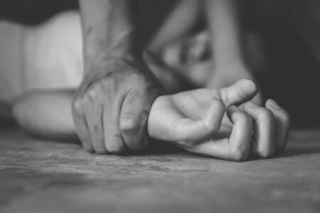 Close up man's hand holding a woman hand for rape and sexual abuse concept.