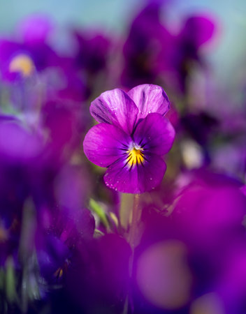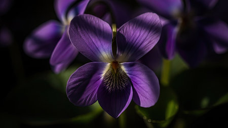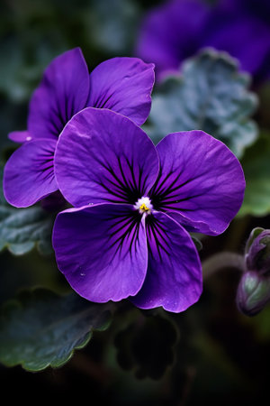close up photo of beautiful violet viola flower, shallow focus
