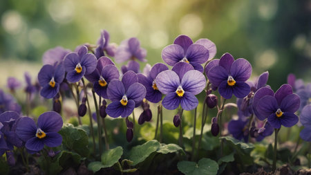 Viola odorata beauty purple field of flowering summer flowers