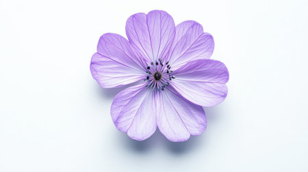 A graceful purple flower with a delicate, see-through quality, casting a faint shadow on a clean white surface, perfect for artistic compositions.