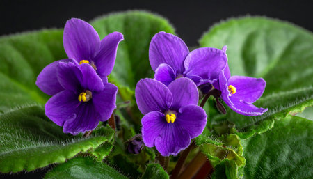 Delve into the mesmerizing allure of vibrant violets, captured in perfect clarity and rich detail. This stunning floral image evokes a serene beauty. Generated A.I.