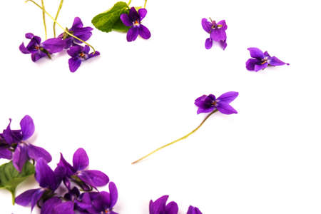 Wood Violet (Viola Odorata) flowers isolated on white background in close-up. Place for text.