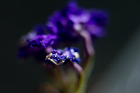 Macro photo of a violet flower on a dark background. Selective focus.
