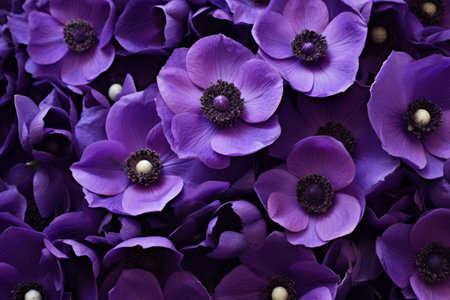 Breathtaking close-up of vibrant purple flowers, petals glistening with morning dew. A mesmerizing display of nature delicate beauty. Perfect for art and nature lovers. Generated A.I.