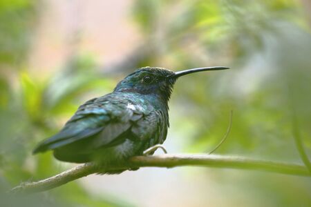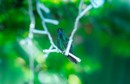 Sparkling violetear (Colibri coruscans) perched on a garden branch