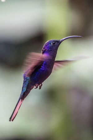 Violet Sabrewing hummingbird Campylopterus hemileucurus flying in the forest in Costa Rica