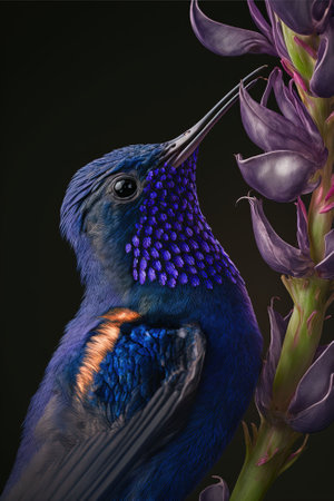 close-up of a colorful hummingbird feeding on nectar, created with generative ai