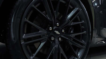 TOMSK, RUSSIA - March 30, 2020: Chevrolet Camaro ZL1 the Exorcist rear wheel is clean