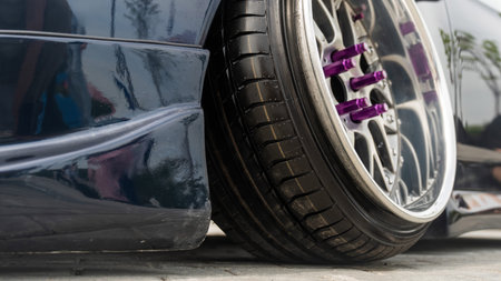 KUALA LUMPUR, MALAYSIA -NOVEMBER 23, 2018: Selected focused on car sports rims with the tyre.