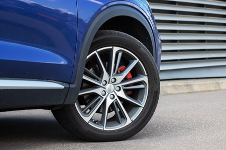 Ukraine, Odessa July 8 - 2021: Wheel with Pirelli Cinturato P7 tire of a new modern BMW SUV car. Back view