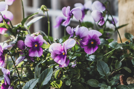 Garden flowers-Violets (Viola tricolor) or horned violet. Also have the name pansies. Soft selective focus.