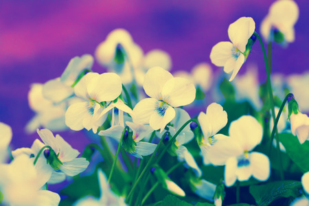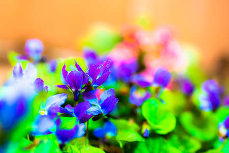 Close-up of colorful purple violets, soft selective focus
