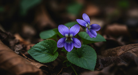 Vibrant Wild Violets in a Lush Forest Setting