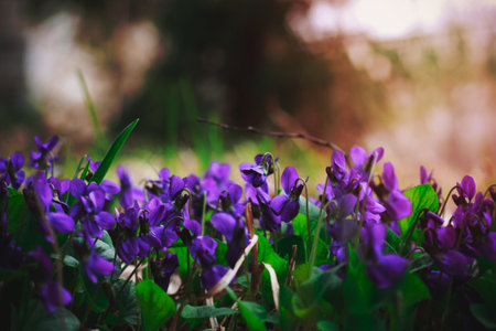 Viola odorata beauty purple field of flowering summer flowers