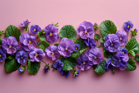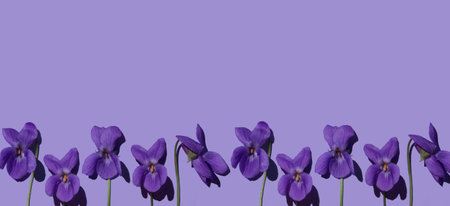 Viola plant violet flower in blossom arrangement with copy space